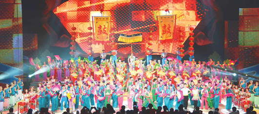 大型文藝晚會《風(fēng)起淮河》以“舞紅花鼓燈,建設(shè)新蚌埠”為主題,由“風(fēng)生水起花鼓紅”、“淮水風(fēng)情”、“華夏溢彩”、“五洲競放”、“好一個花鼓燈”等五個篇章組成,節(jié)目具有蚌埠獨特的標識感,充分體現(xiàn)了“唱傳淮河文脈,解讀蚌埠新韻”的內(nèi)涵,全面展示了淮河風(fēng)情、民族特色、蚌埠情懷和時尚潮流。