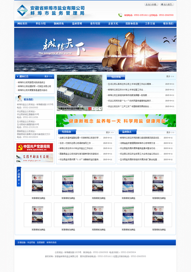 多年來,蚌埠鹽業(yè)認真貫徹落實國家《食鹽專營辦法》、《食鹽加碘消除碘缺乏危害管理條例》,始終以食鹽市場安全穩(wěn)定為天職,忠實履職,恪盡職守。一方面對全市鹽業(yè)市場進行鹽政監(jiān)管,嚴厲打擊鹽業(yè)違法犯罪,全力維護食鹽市場安全穩(wěn)定;另一方面負責組織開展食鹽專營,致力為消費者提供安全、優(yōu)質(zhì)、放心的加碘食鹽,確保全市371萬人口的食鹽供應。與此同時,蚌埠鹽業(yè)主動適應市場需要,積極拓展非鹽經(jīng)營,在發(fā)展的道路上不斷深化改革,自主創(chuàng)新,產(chǎn)業(yè)結(jié)構(gòu)轉(zhuǎn)型邁出堅實步伐,全區(qū)總資產(chǎn)已近8000萬元,現(xiàn)有經(jīng)營倉儲面積約1.5萬平米,在建倉庫1萬余平米。2014年實現(xiàn)銷售收入14762.69萬元,其中食鹽銷售4967.40萬元,非鹽銷售9795.20萬元、實現(xiàn)利稅1124.52萬元,經(jīng)濟社會效益居全省同行領(lǐng)先。先后榮獲全省鹽業(yè)系統(tǒng)先進單位五連冠、安徽省勞動保障誠信示范企業(yè)、安徽省衛(wèi)生先進單位、檔案管理考核安徽省一級單位、蚌埠市A級納稅信用單位、蚌埠市第十四屆文明單位等多項榮譽稱號。
